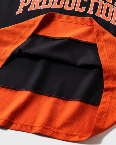 切り替えデザインのビッグTシャツ。軽量で吸水速乾性のある機能素材クールマックス®エコメイドを使ったドビー織りの生地を使用。