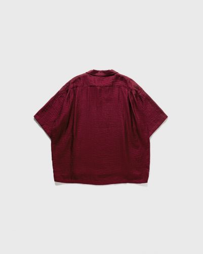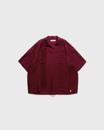 ドレープ感のある柔らかな素材でランダムな織り模様と光沢が特徴の生地を使用した開襟プルオーバーポロシャツ。