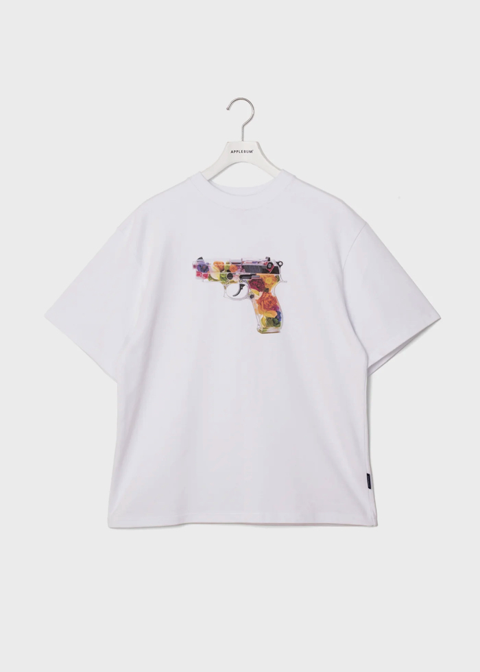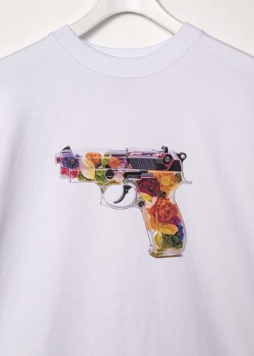 暴力や戦争の象徴を反転させたグラフィックで、静かに意思を表現。