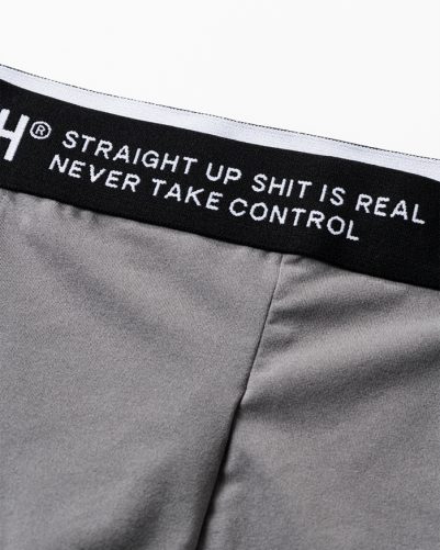 ウエストにはロゴメッセージ入りジャガードゴムを使用。
