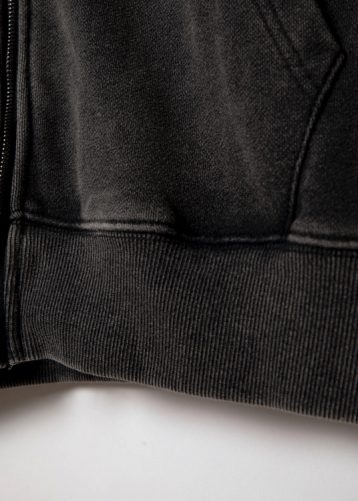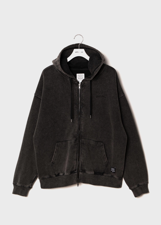 ピグメント加工を施し、ヴィンテージスウェットのような風合いを再現したジップアップパーカー。