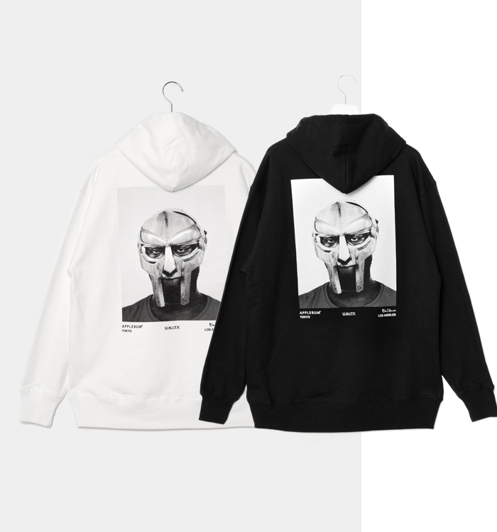 伝説的MC・MF DOOMのポートレートをフロントに大胆に配した、APPLEBUM × Eric Colemanによるコラボレーション・スウェットパーカー。