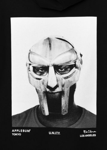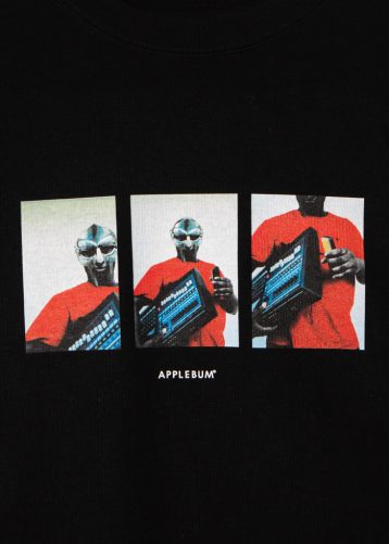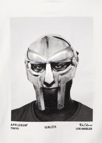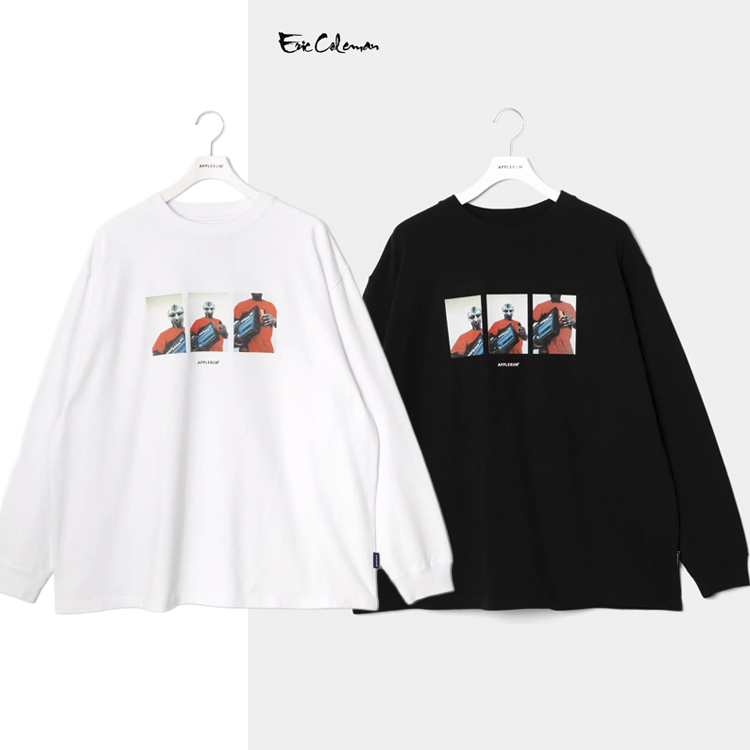 ヒップホップの象徴的存在 MF DOOM を、異なる3カットで構成した印象的なビジュアルをフロントにレイアウトした、APPLEBUM × Eric Coleman コラボレーションのロングスリーブTシャツ。