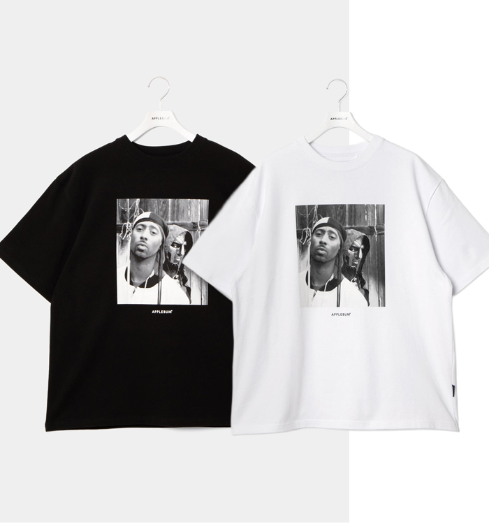 アンダーグラウンド・ヒップホップの金字塔『Madvillainy』を生んだ2人、 MadlibとMF DOOMが並んだ貴重な2ショットをフロントに大胆に落とし込んだ、APPLEBUM × Eric Coleman のコラボレーションTシャツ。