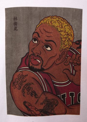 プロスポーツ界で異彩を放ち、その自由奔放なライフスタイルでも注目を集めた“異端児”WORMを、浮世絵の世界観で描いたグラフィックTシャツ。