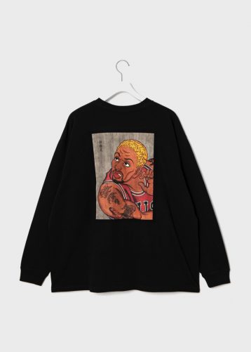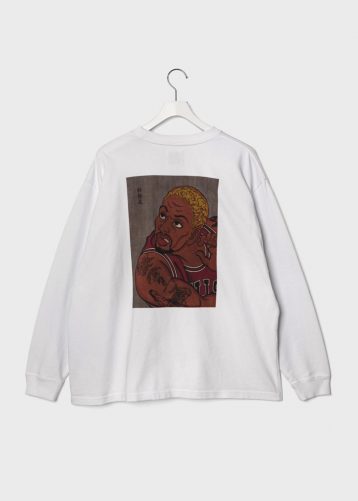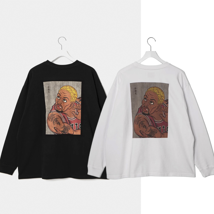 プロスポーツ界で異彩を放ち、その自由奔放なライフスタイルでも注目を集めた“異端児”WORMを、浮世絵の世界観で描いたグラフィックをバックに落とし込んだロングスリーブTシャツ。