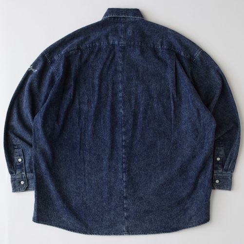 柔らかな肉感と適度なウェイトのデニム素材を使用した、ケミカルウォッシュによる絶妙な色合いとアタリ感が印象的なワークシャツ。