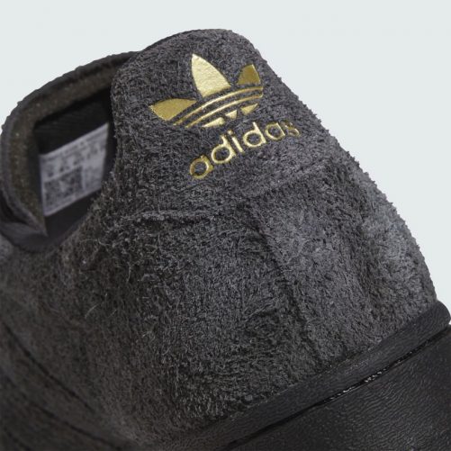 摩耗しやすいエリアをアディタフ(Adtifuff)で補強した構造で、ダブルステッチを施したアイステイシームで耐久性を高め、改良されたシュータン構造と成型の合成繊維(EVA)ソックライナーで快適性と衝撃吸収性を実現したスーパースター ADV。