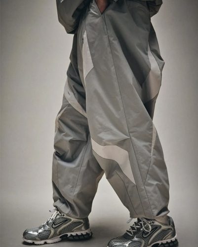 トライアングルの切り替えデザインを施したバルーンパンツ。