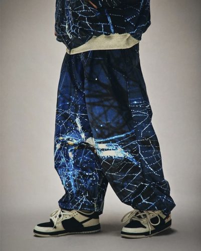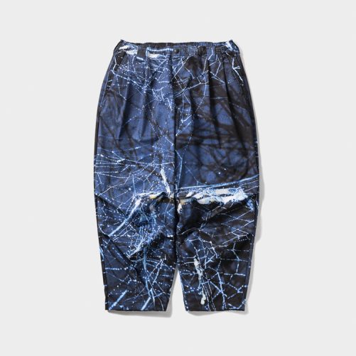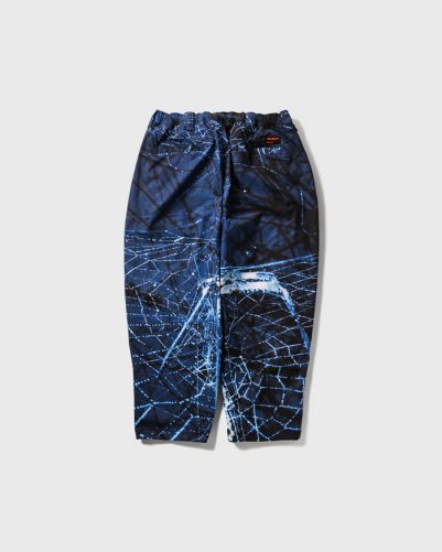 蜘蛛の写真を全面に昇華転写プリントしたトラックパンツ。