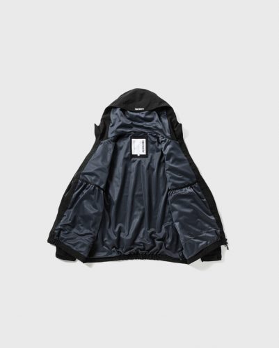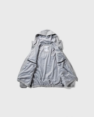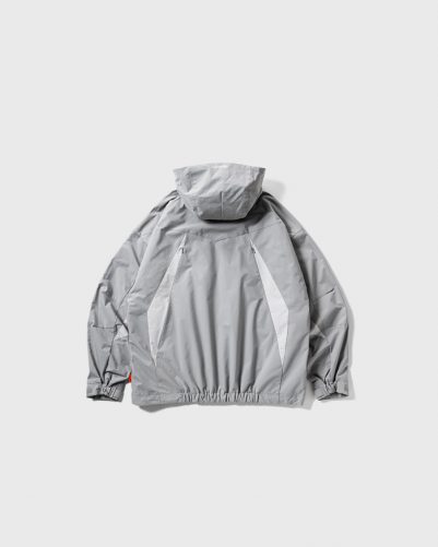 フードには顔まわりだけでなくの後頭部付近にもドローコードを巡らせ細かなフィット感の調整が可能。