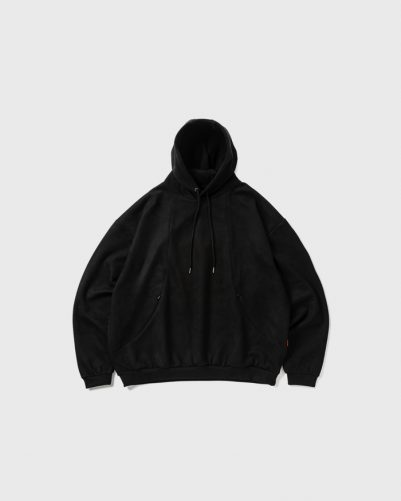 スエード調の質感が特徴的な生地を使用したプルオーバーフーディ。