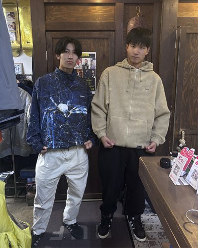 毎月、いや、毎週のようにお店に来てくれる高校の同級生達がTIGHTBOOTHのジャケット、FATのジップパーカーをゲトりに来てくれました〜