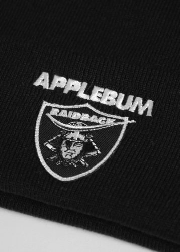 APPLEBUM × raidback fabricによるコラボレーションニットキャップ。 某チームロゴ(レイ◯ース)を“独眼流”でサンプリングしたグラフィックをワッペンで配置。 伸縮性のあるリブ編みで、快適なフィット感とデイリーな使いやすさを兼ね備えたデザイン。