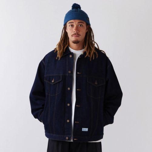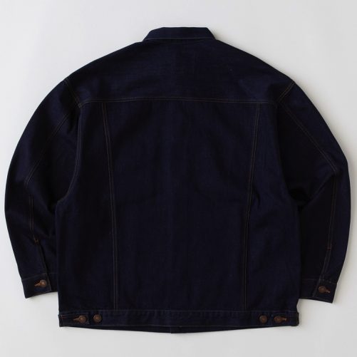 リラックスシルエットにこだわったデニムジャケットは、12.5ozデニムを使用した程よい肉感と動きやすさが特徴的。身幅・肩幅・アームまわりにゆとりをもたせた独特なカッティングは、ボリューム感を活かしたワイドなコーディネートを楽しみたいアイテム。ハンドウォーマーを備えるなど機能性にもこだわった1着。フロント裾のブランドネームが程よいアクセントに。