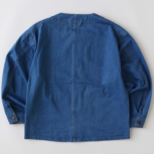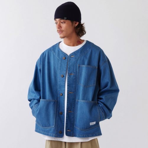 程よい肉感の12.5ozデニムを使用したノーカラージャケット。スウェットパーカーをインナーに合わせてネックにアクセントを加えいつもとは一味違ったワークスタイルを楽しみたい。ハンドウォーマーを備えるなど機能性にもこだわったアイテム。腰ポケットのブランドネームもさりげなく主張してくれる。