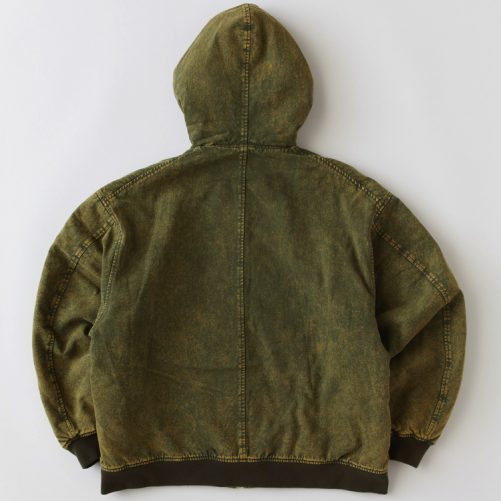 ケミカル加工による絶妙な色合いとアタリ感が印象的なキルティングパーカー。柔らかな肉感と適度なウェイトのキャンバス素材を使用し、ゆとりのあるシルエットながらも着丈を短くすることにより、インナーとの絶妙なバランスを楽しみたいアイテム。胸のロゴ刺繍やポケットのブランドネームもさりげなく主張してくれる。
