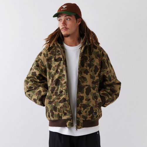 目の詰まった肉厚キャンバス素材を使用したキルティングパーカーは、ダックハンタープリントが印象的。ウォッシュ加工を施すことで適度な柔らかさと動きやすさに仕上げたアイテム。ゆとりのあるシルエットながらも着丈を短くすることにより、インナーとの絶妙なバランスを楽しみたいアイテム。胸のロゴ刺繍やポケットのブランドネームもさりげなく主張してくれる。