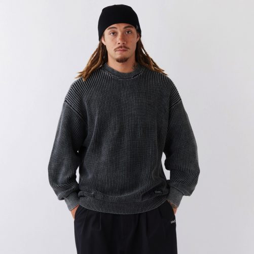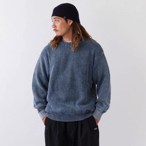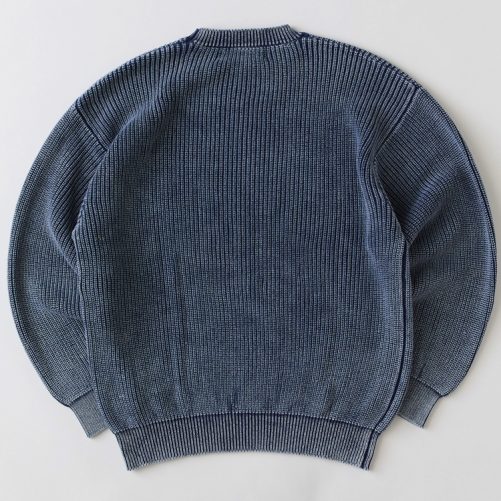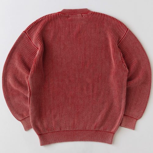 絶妙な色合いとアタリ感が印象的なケミカル加工を施したクルーネックニット。畦編みを採用することで肉厚ながらも適度な伸び感のあるスウェットライクな着心地が楽しめる。Tシャツの上からラフに羽織るも良し、アウターのインナーとして合わせても面白い。幅広いコーディネートで活躍してくれるアイテム。裾のブランドネームがさり気なく主張してくれる。