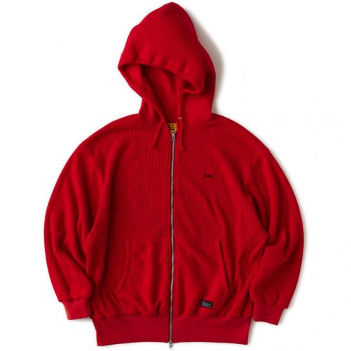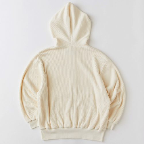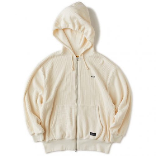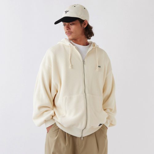 程よい肉感のワッフル素材を使用したZIPパーカー。シンプルながらもダブルフェイス仕立てにすることで保温性の高いアイテム。リラックスシルエットと2WAYフロントジップを活かして幅広いコーディネートで楽しみたいアイテム。胸の刺繍とポケットのブランドネームが程よく主張してくれる。