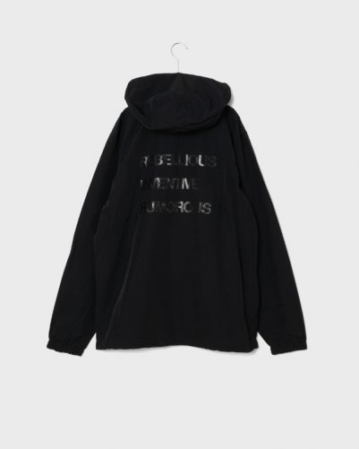 シンプルなナイロン素材のアノラックパーカー。
