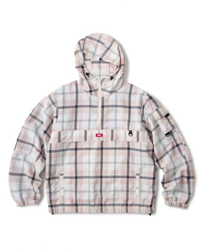 撥水加工されたコットンナイロングログランを使用したチェック柄セットアップと