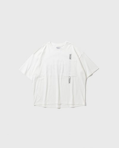 フロント左胸にはロゴプリントの上からサイドオープニングのパッチポケットを配置。