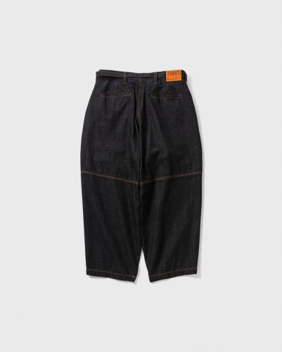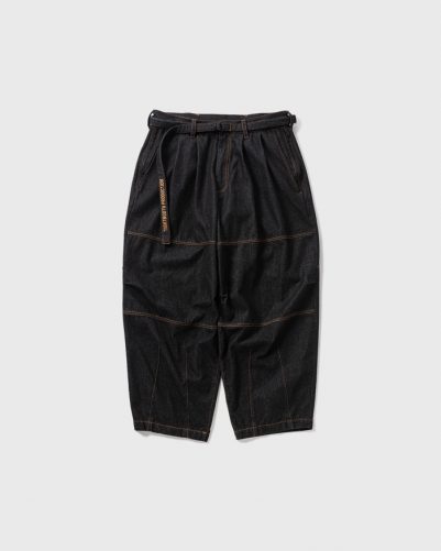 定番のバルーンパンツに切り替えデザインを施したデニムパンツ。