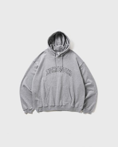 カレッジロゴをフロントに刺繍したスウェットフーディ。